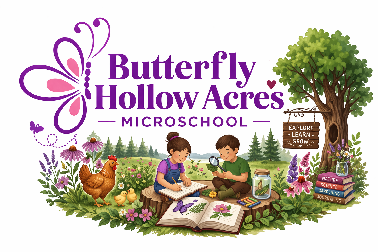 Butterfly Hollow Acres provides hands-on learning sessions held on select weekdays and weekends throughout the year. Students participate in activities such as gardening, nature journaling, science projects, and educational field trips. Our small farm and homestead serve as an extended classroom where students explore agriculture, science, and the natural environment.